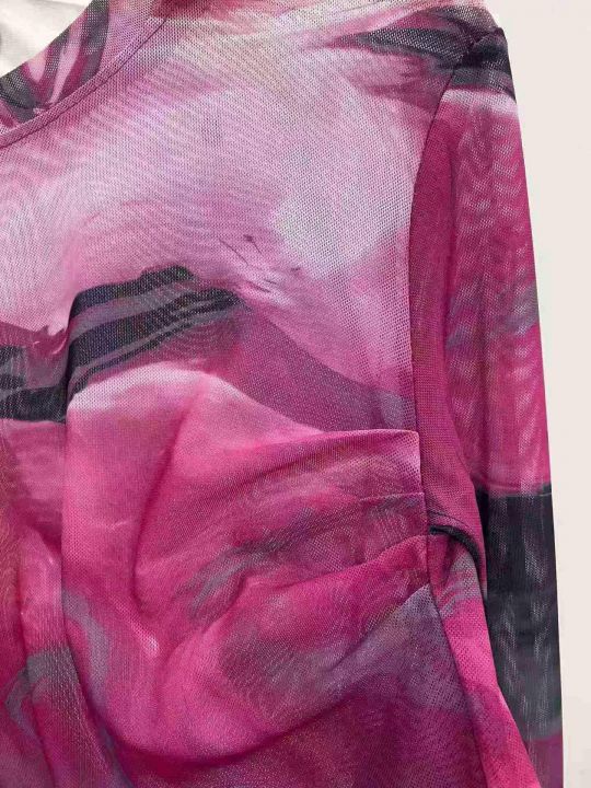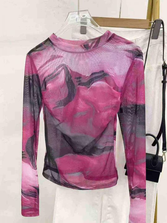 复古晕染网纱辣妹长袖77件7.8,面料舒适有弹力,褶皱...