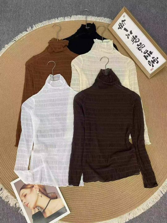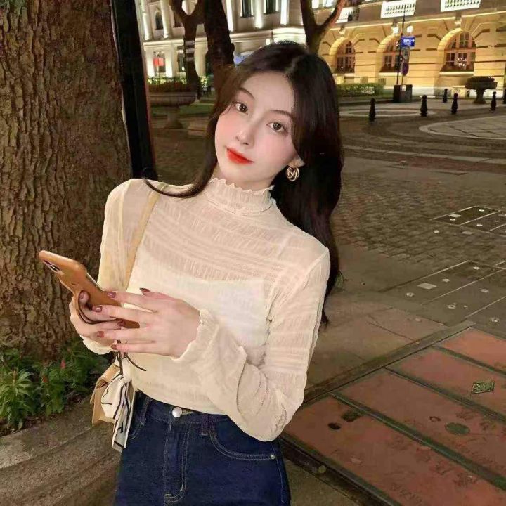半高领网纱打底衫350件5.9,面料柔软高弹力,木耳边设...