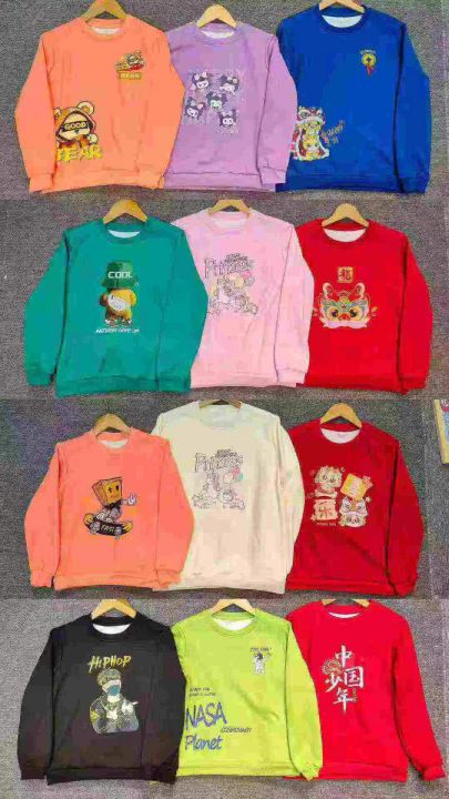 1560件秋冬男女中大童休闲圆领多巴胺印花加绒卫衣 内里婴儿绒,后领包边过肩 杂图杂色,码数110-170 货品干净防水袋装。