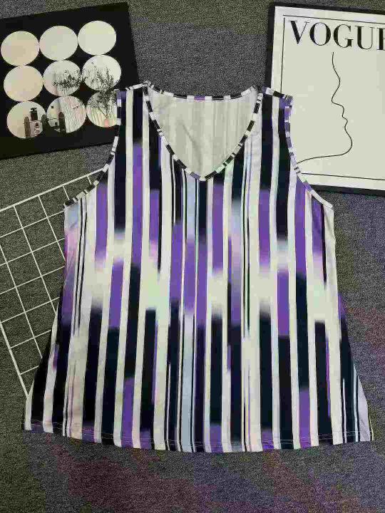 复古条纹背心吊带宽松显瘦V领宽松通勤夏季穿着舒适女士印花仙气,独立拉链包装,数量300左右,码数XL-5XL,全清3.5元