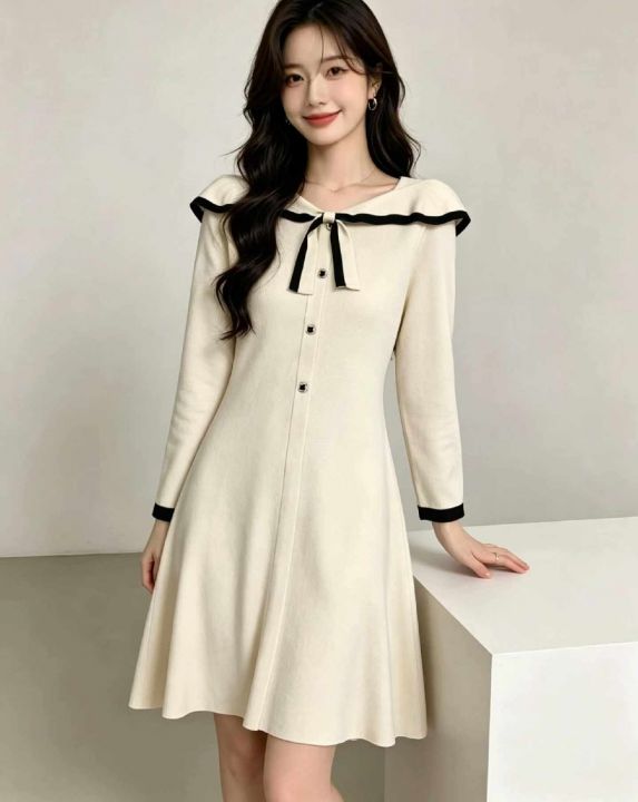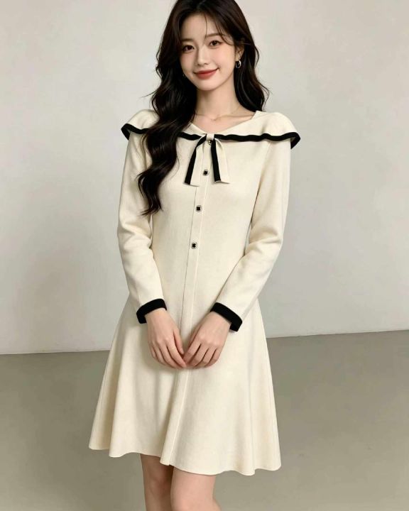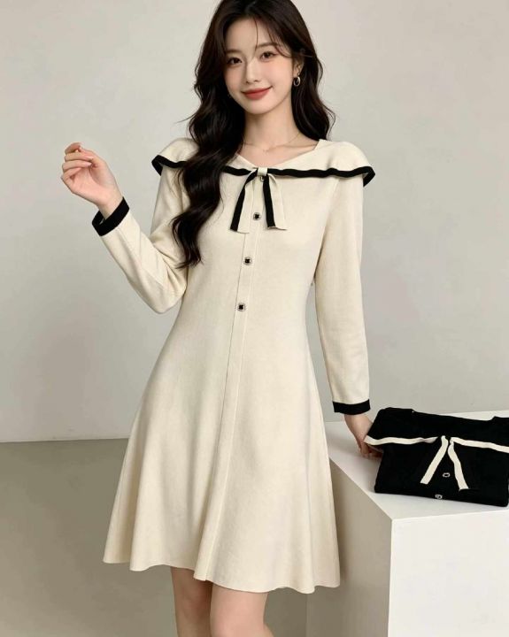 秋冬新款韩系宽松复古小香风设计款毛衣连衣裙,独立包...