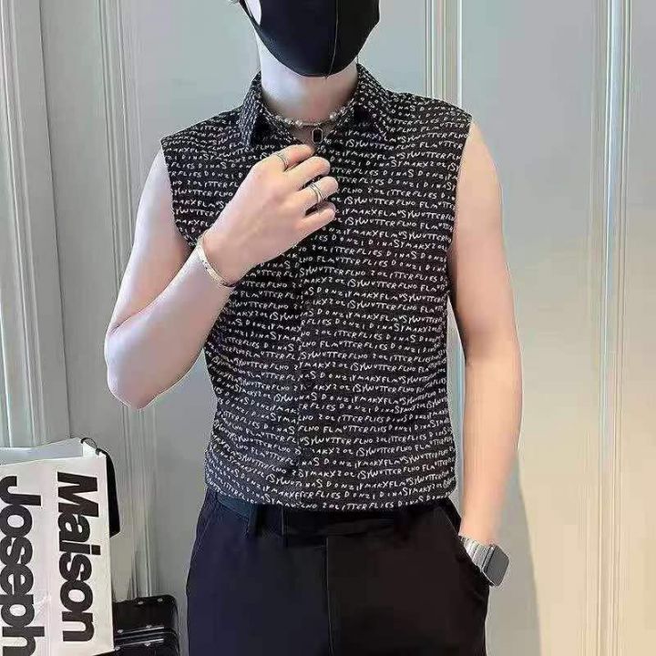 [月亮]:25年新款休闲痞帅无袖纽扣衬衫