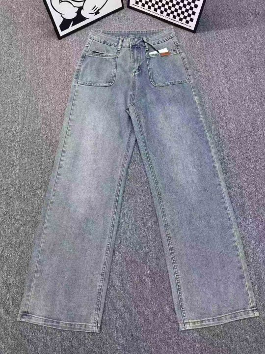 新款时尚百搭双口袋带皮标直筒牛仔阔腿裤,单款两色,...