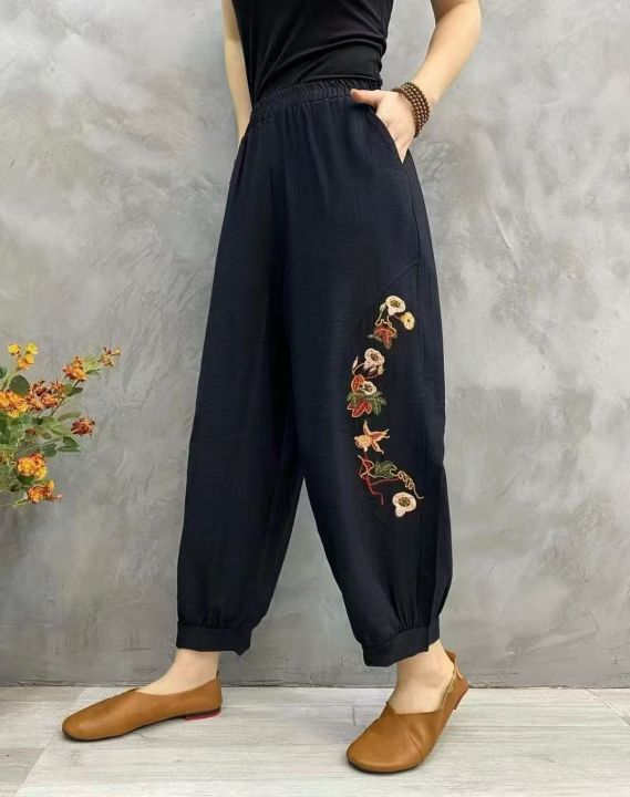 刺绣天丝棉麻裤(可穿150斤以上)