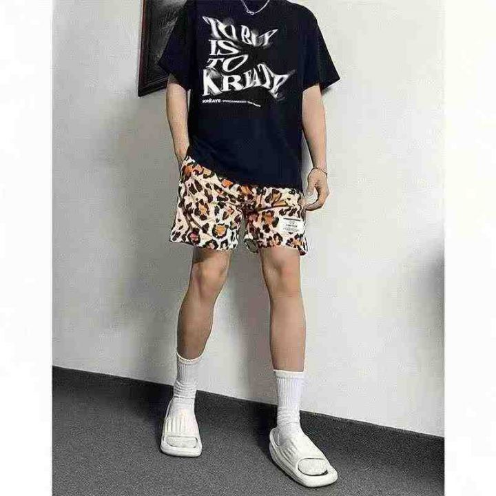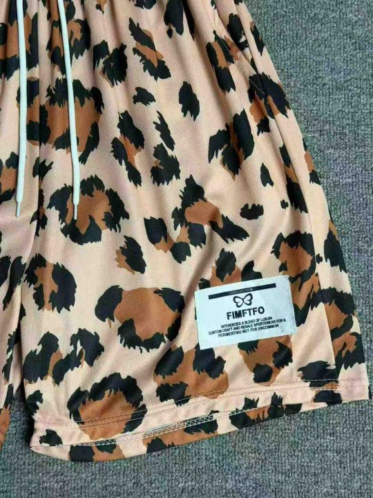 男士夏季薄款透气运动美式网眼短裤时尚沙滩泳裤豹纹四分不过膝裤子,独立包装,1758件,尺码M-3XL