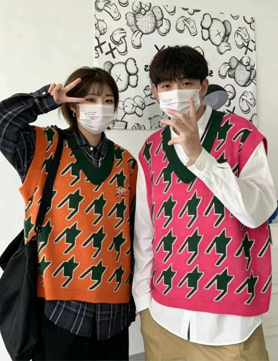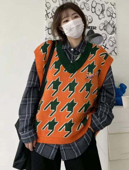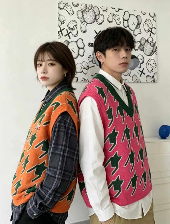 秋冬新款网红复古提花宽松慵懒风男女同款毛衣马甲,均...