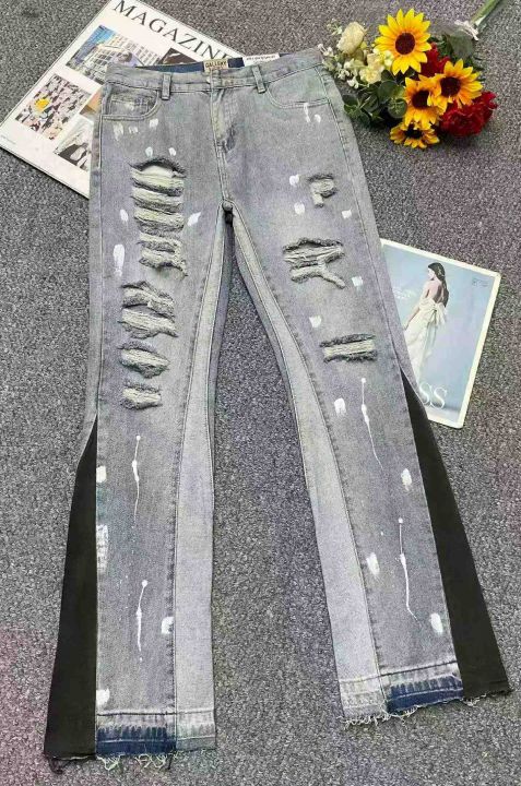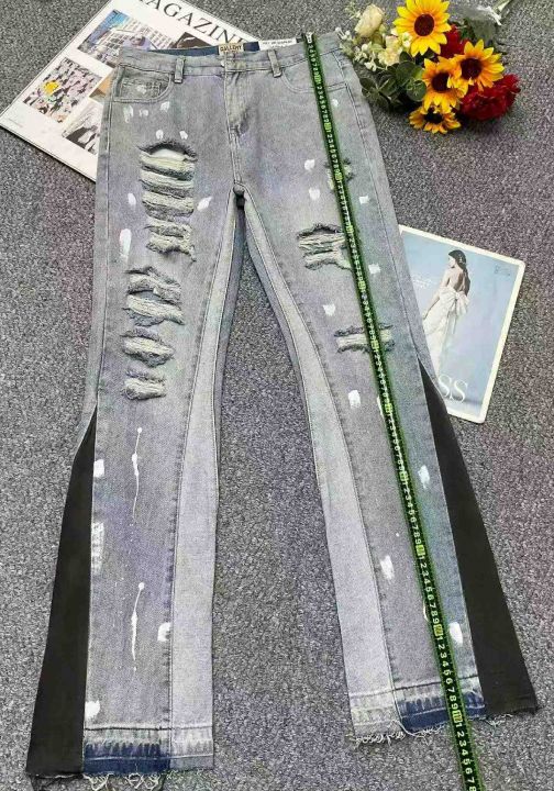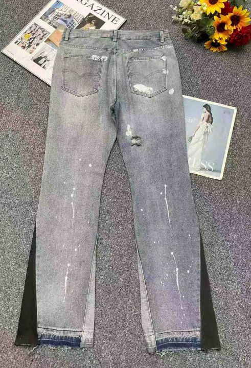 春夏季新款男美潮高街复古泼墨涂鸦直筒微喇叭牛仔裤,独立包装带腰卡,码数M-2XL码,100件,全清8.9元超低价秒杀!