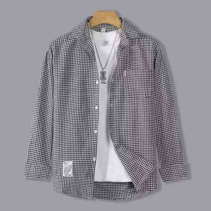 新款长袖衬衫男女时尚潮流百搭撞色格子衬衫上衣服男外套,图片2个款,M-3XL,独立包装,货品干净,360件左右,7.5清,分货加1,模特供参考