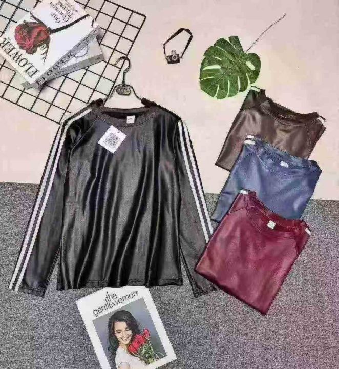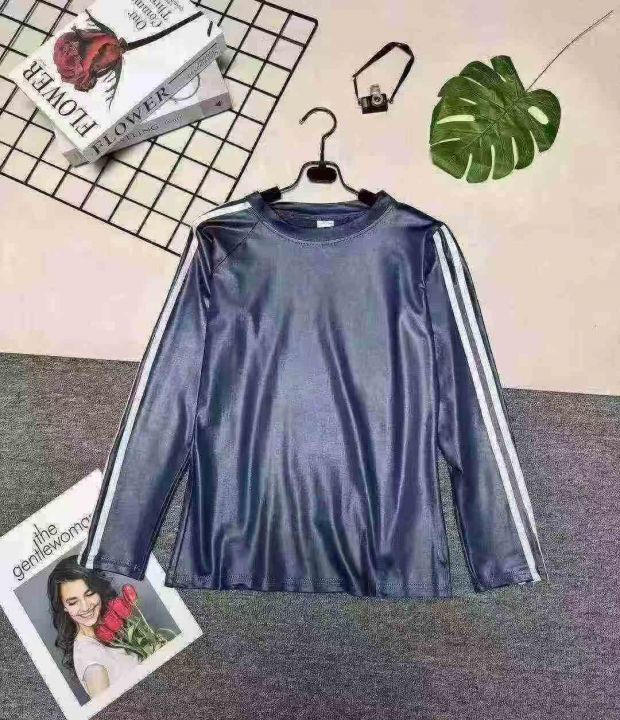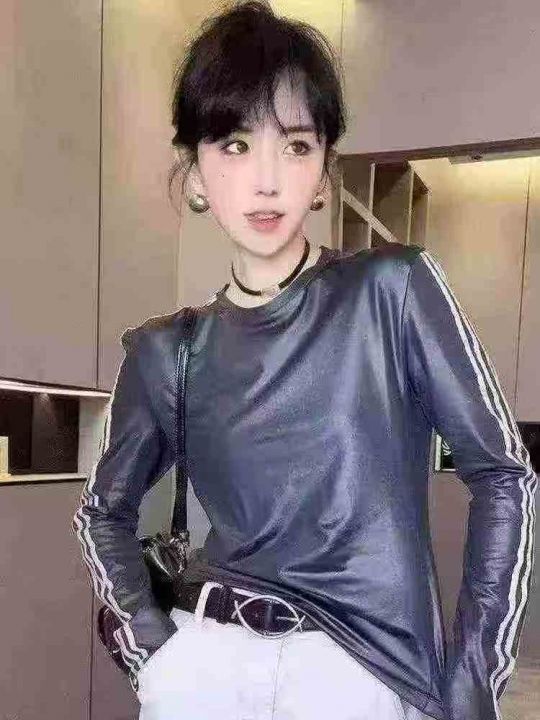 女款亮面圆领拼色长袖T