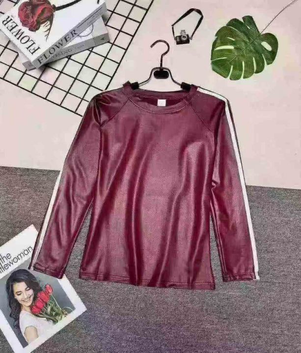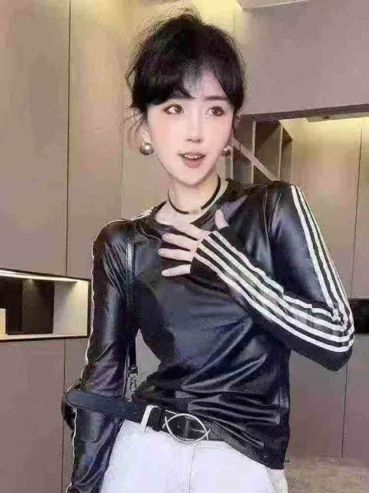 女款亮面圆领拼色长袖T