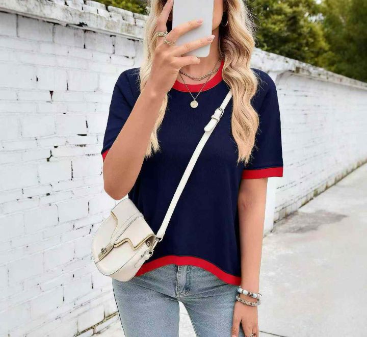 夏季新款品牌原单宽松百搭拼接撞色圆领针织短袖T桖,独立包装带吊牌,图片款2款多色大版型,码数S--XL码,1090件,全清5.9元超低价秒杀!分货加一!