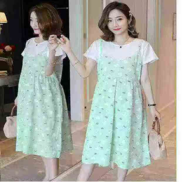 70件新款孕妇装网红夏装假两件宽松甜美连衣裙,码数L-3XL,独立包装货品干净,5.8清