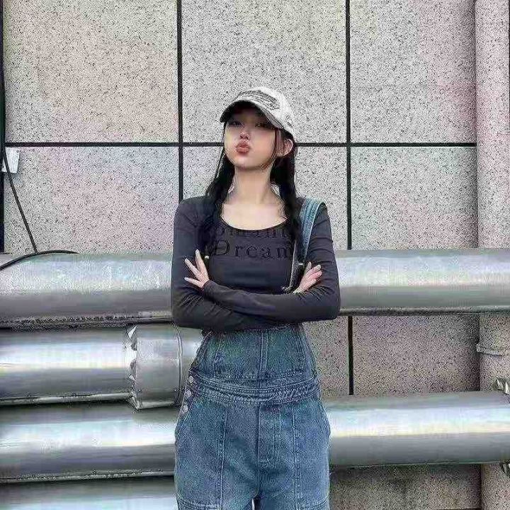 [月亮]:简约字母印花U领辣妹长袖上衣