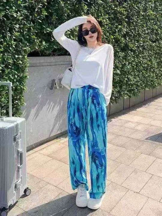 [月亮]:多巴胺孔雀蓝扎染靓妹休闲裤