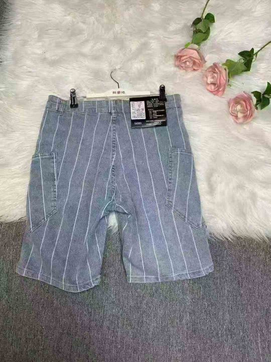 弹力条纹短裤男生外穿夏季薄款休闲中裤网红潮流百搭五分牛仔裤300件,图片款式,独立包装带腰牌,尺码M~L福利价7.8元