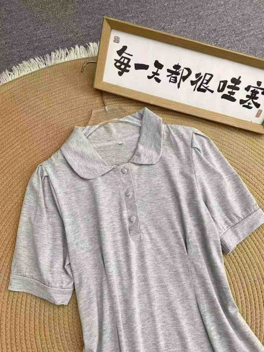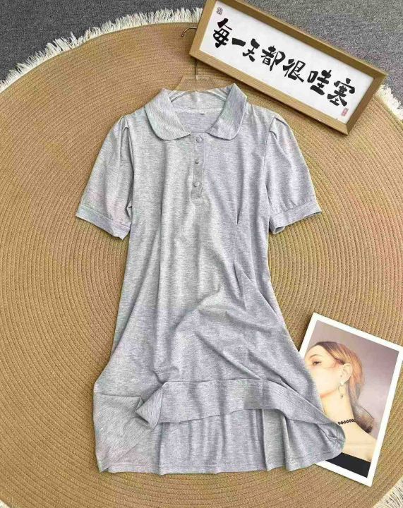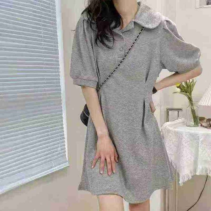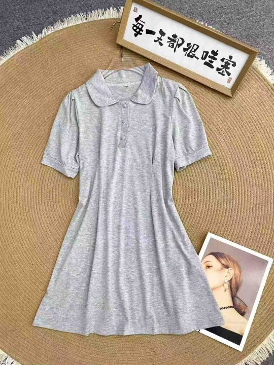 灰色休闲Polo领连衣裙102件7.5,面料柔软舒适,褶皱收...