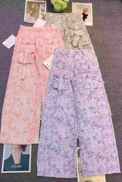 甜美辣妹炸街多口袋设计工装牛仔裤,[爱心]190件左右,码数S-L,M码腰围72裤长110,单款三个色,穿70-130斤,广州十三行货,原包装️无瑕疵,[666]实体店品质,分货加一