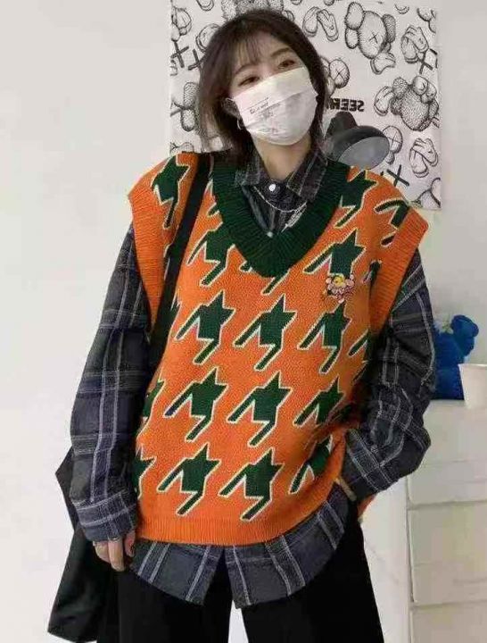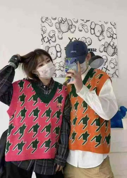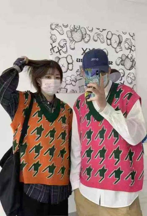 秋冬新款网红复古提花宽松慵懒风男女同款毛衣马甲,均...