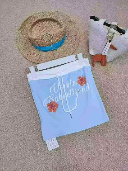 [月亮]:5.5清410件[月亮]:美式辣妹多巴胺蓝色纯棉抹...