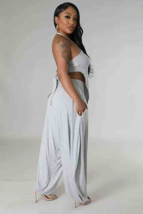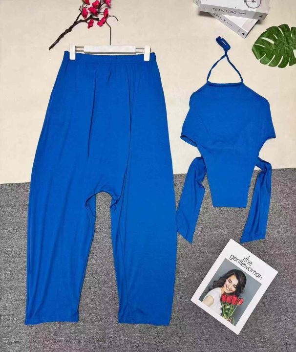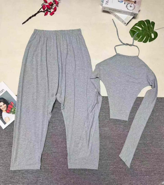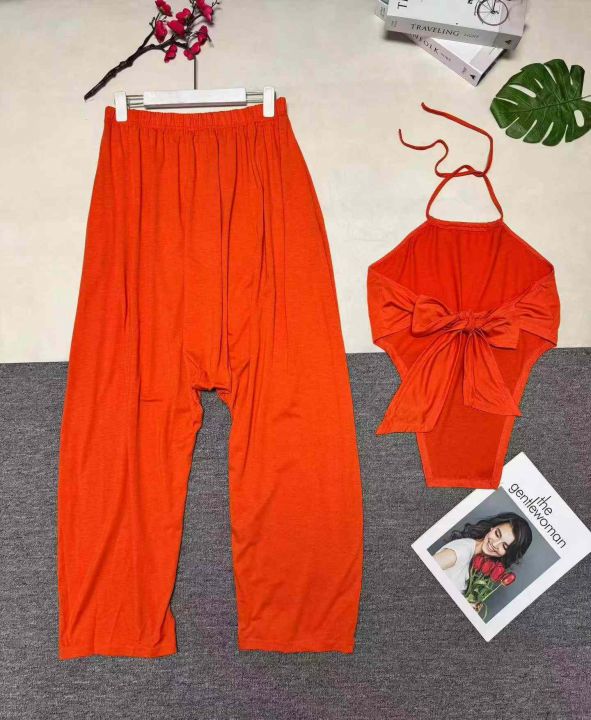欧美洋气性感露背绑带上衣,长裤两件套,整款三色,数量:256套,码数:S-2XL,品质好,拉链式独立包装。