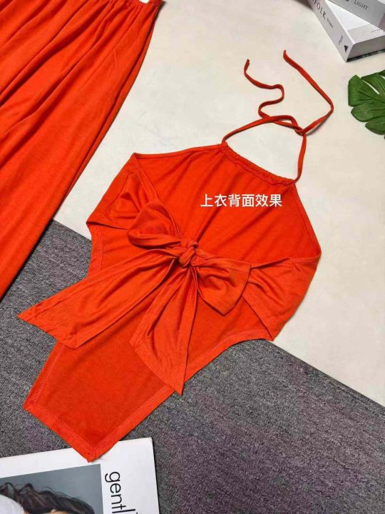 6.8清欧美洋气性感露背绑带上衣,长裤两件套,整款三...