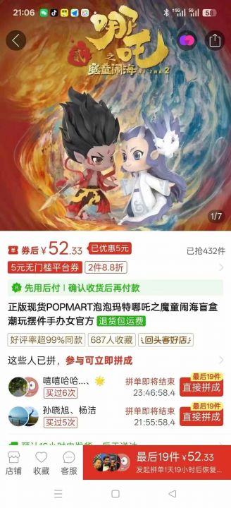 正版泡泡玛特哪吒之魔童闹海盲盒潮玩摆件手办,到货15...