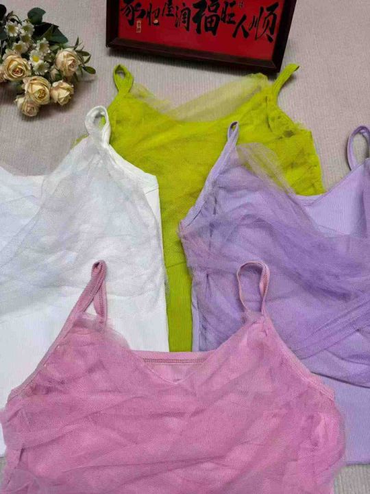 纯欲辣妹风网纱交叉拼接百搭吊带背心·单款4个色S-3XL独立包装360件全清5.9分货加一