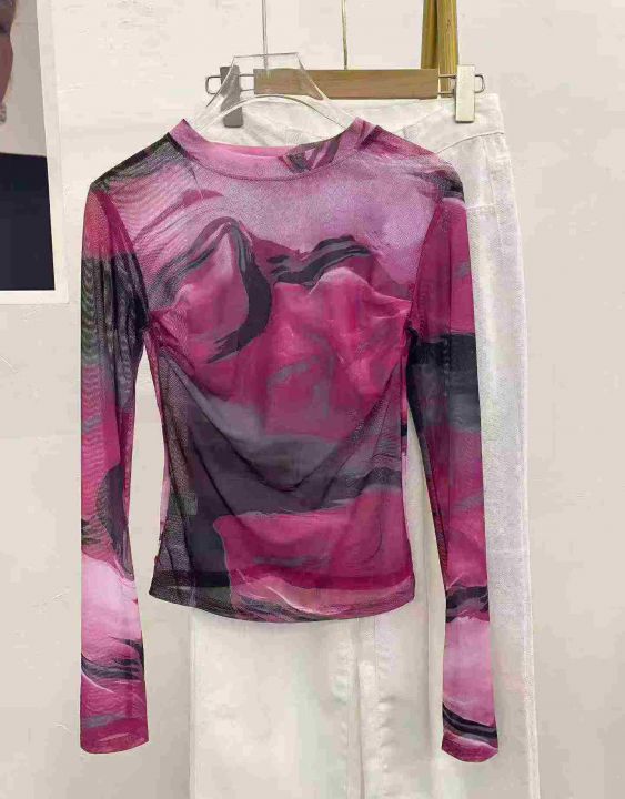 复古晕染网纱辣妹长袖77件7.8,面料舒适有弹力,褶皱...