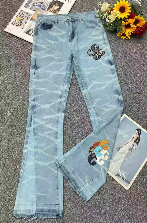 春季新款男士网红潮牌设计款刺绣微喇叭直筒牛仔裤,码数M--2XL码,220件,全清9.9元超低价秒杀!