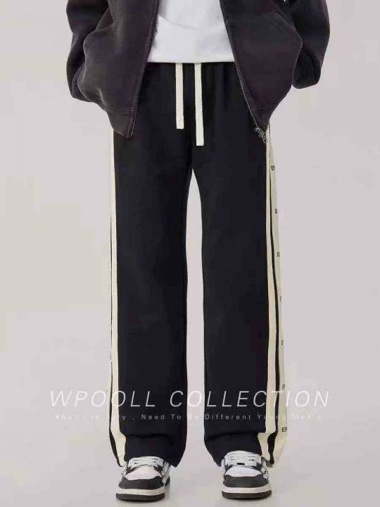 美式高街直筒裤宽松运动裤高腰卫裤垂坠感休闲长裤数...