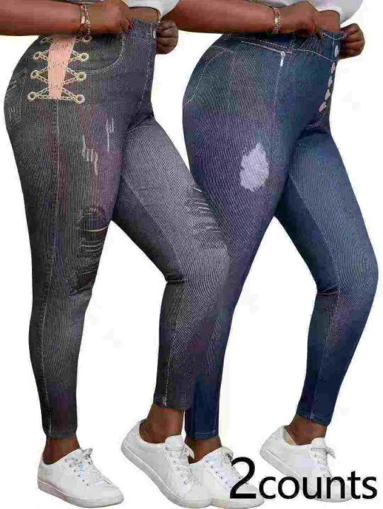 138000万件条欧美大码高弹力冰丝仿牛仔女裤,码数0XL-4XL。不仅图片款,小整带杂,非常适合出口外贸的产品!属于高克重面料!