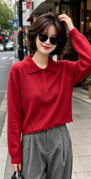 春季新款净版网红半扣polo领长袖针织衫,独立包装,均...