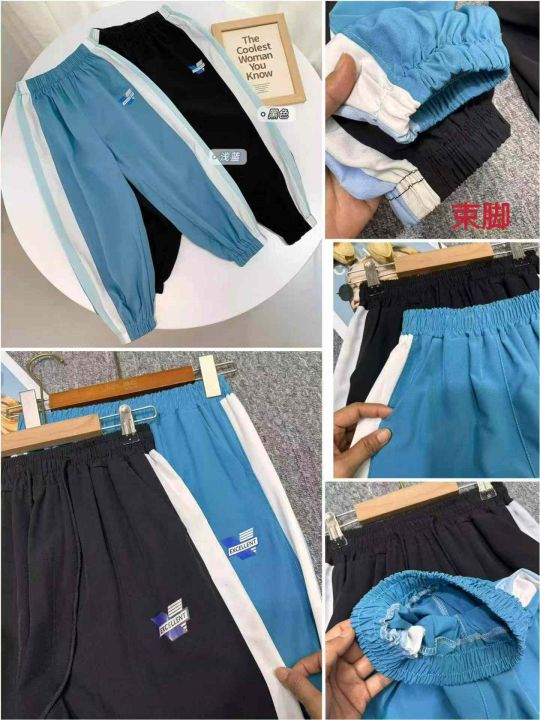 夏季热卖中大童冰丝束脚时尚休闲裤子,独立包装,整款两色,黑色稍微有点串色,如图7,码数110-170,数量658条(黑色大概280条),(V2017)