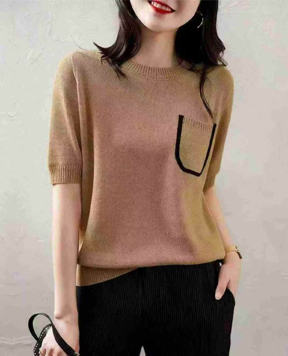 夏季新款韩系亚麻透气肌理薄款圆领口袋设计款冰丝针织T桖,独立包装均码面料柔软舒适有弹力,230件,全清5.9元超低价秒杀!分货加一!