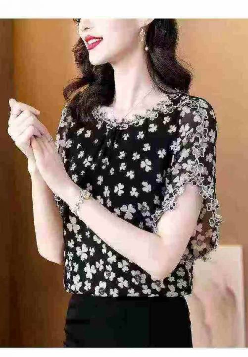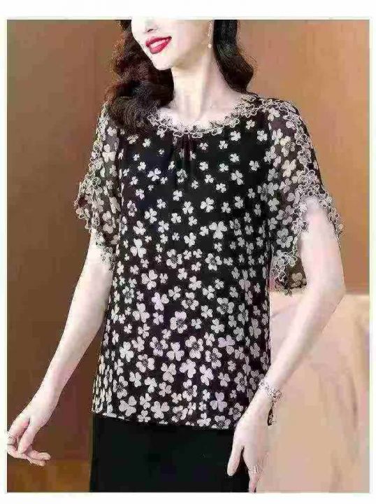 夏季新款时尚洋气中年妈妈气质印花雪纺衫,独立包装,码数L--3XL码,357件...