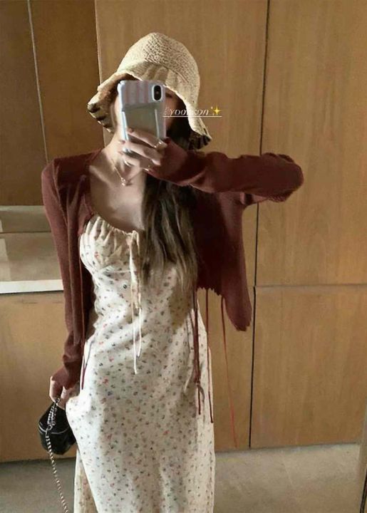 春夏季新款网红复古木耳边绑绳设计款针织长袖毛衣开衫...