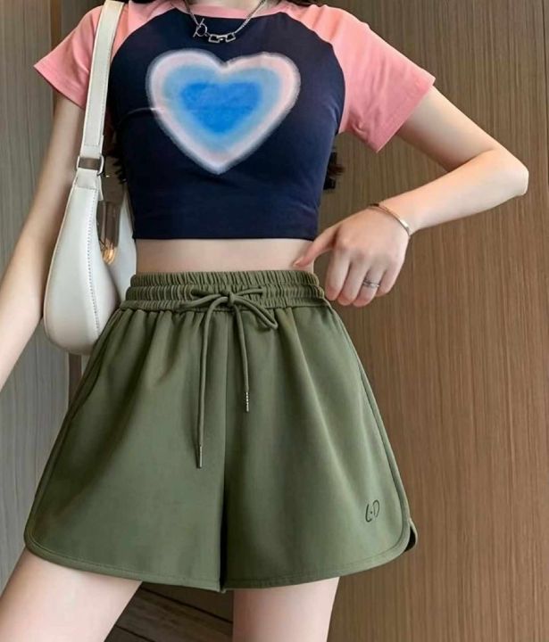 夏季新品休闲时尚百搭宽松显瘦抽绳高腰运动棉短裤,独...