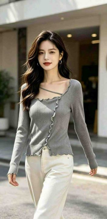 秋冬新款网红爆款方领木耳边开叉针织套头毛衣,独立包...