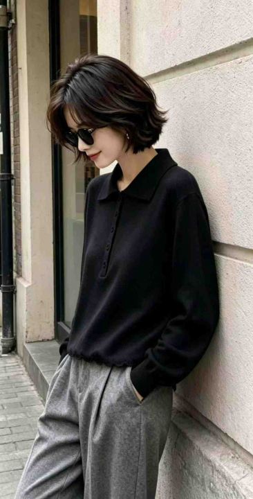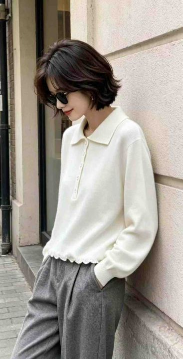 春季新款净版网红半扣polo领长袖针织衫,独立包装,均...