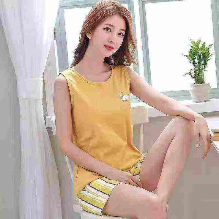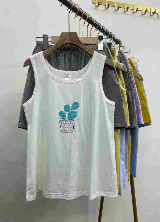 506套紧密棉印花休闲背心居家服套装。部分款式刺绣,...
