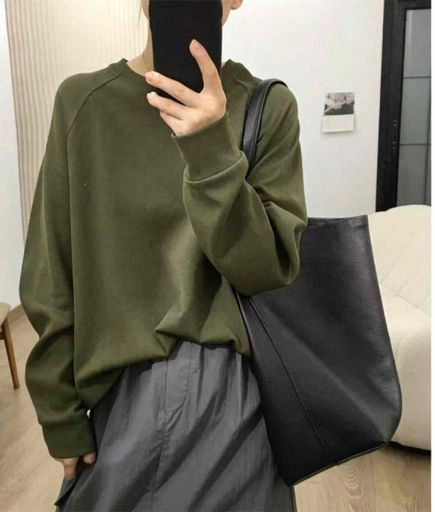 春季新款净版简约宽松大版下摆开叉设计款纯棉毛圈卫衣...