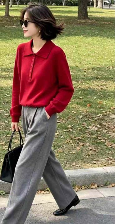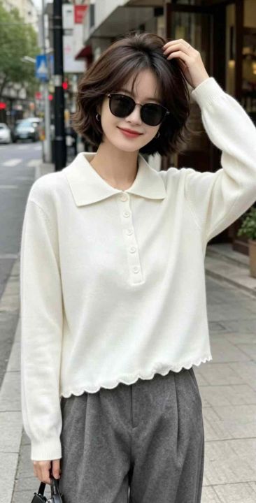 春季新款净版网红半扣polo领长袖针织衫,独立包装,均...