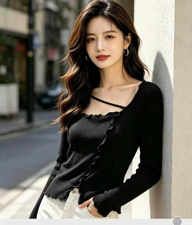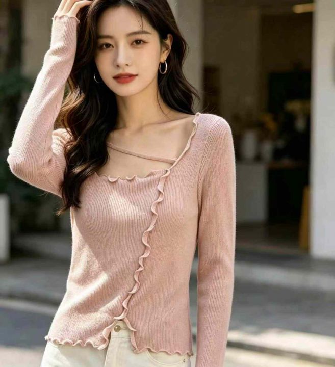 秋冬新款网红爆款方领木耳边开叉针织套头毛衣,独立包...