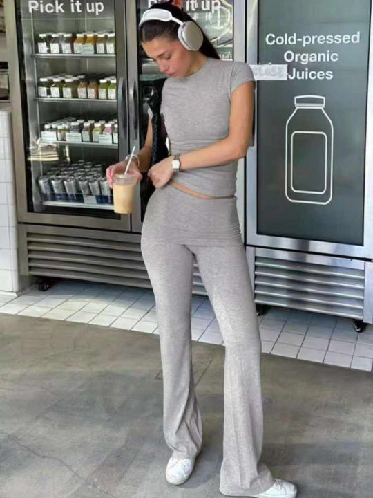 6.8清电商仓回收475套辣妹灰色短袖微喇裤运动休闲套装...