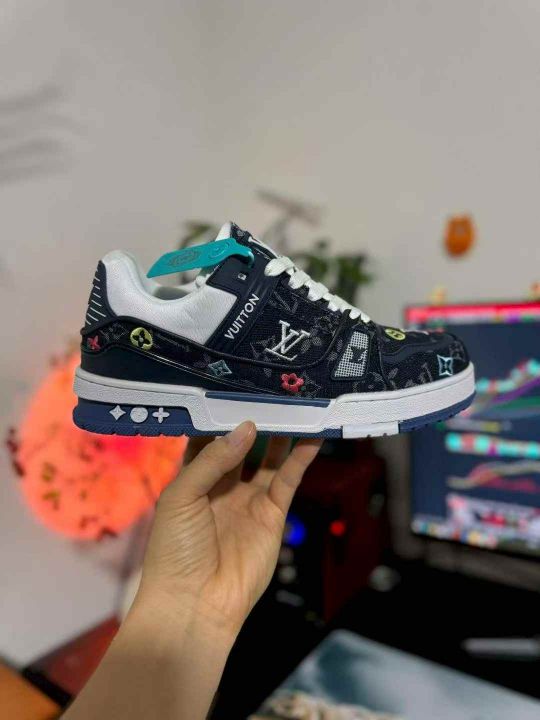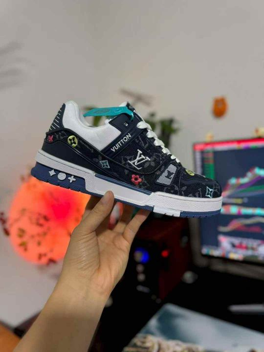 尺码40-44 天地盖鞋盒 刺绣蓝高版本LV 橡胶填充大底 ...