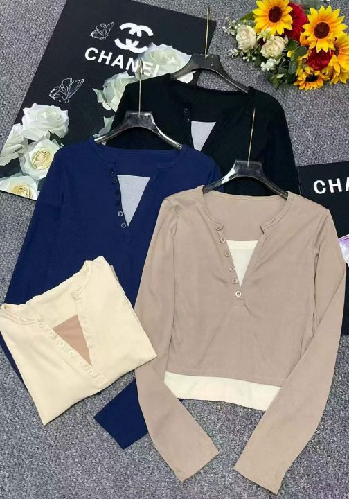 春季新款韩版正肩假两件V领修身显瘦设计感长袖上衣,独立包装,码数M--XL码, 440件,全清5.8元超低价秒杀!分货加一!