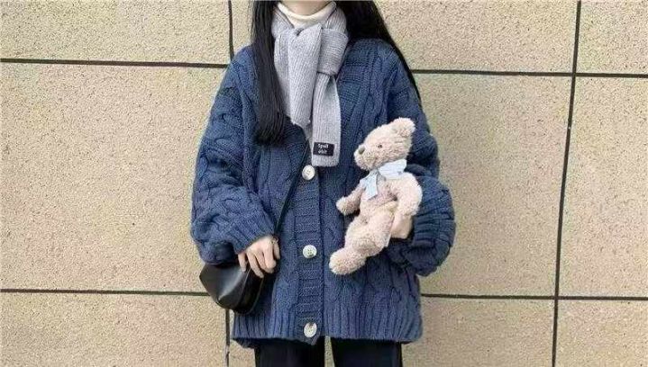 秋冬新款网红复古时尚百搭宽松麻花毛衣开衫,独立包装...