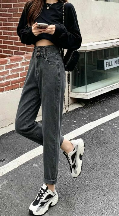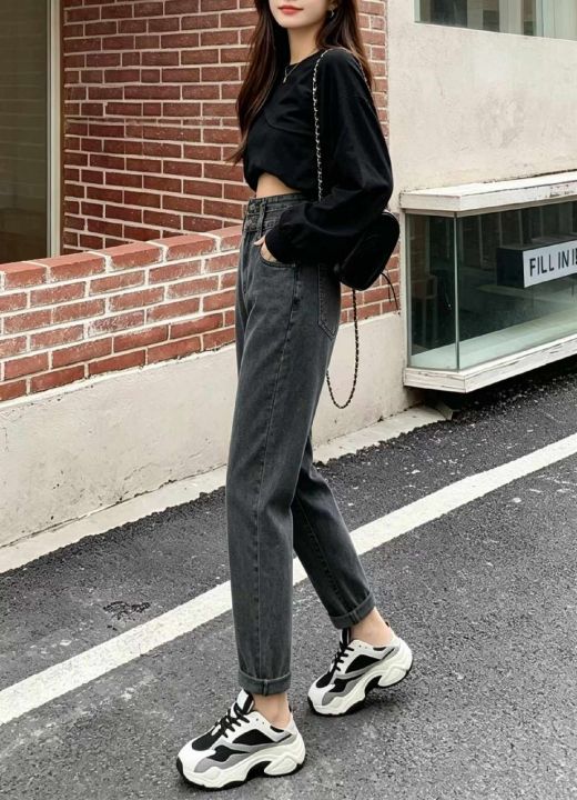 春夏季新款网红复古微胖MM哈伦牛仔老爹裤,独立包装带...