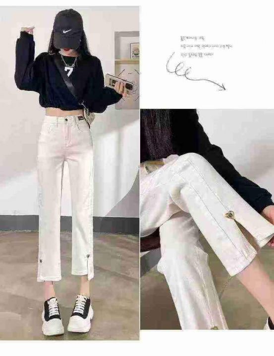 高腰弹力百搭显瘦开叉小个子烟管牛仔裤,整款2色,独立包装,数量90条,25-...