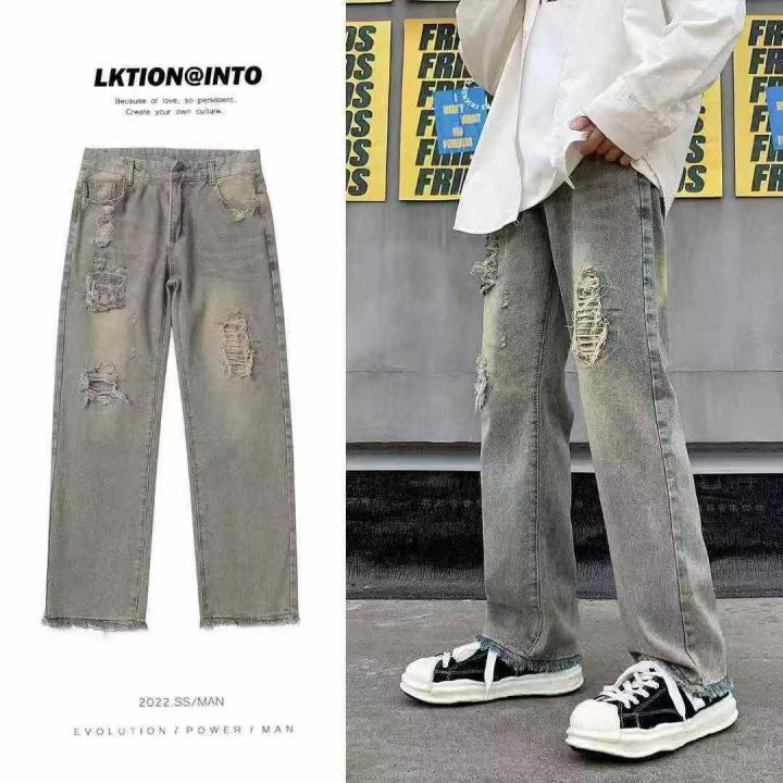 美式vibe风裤子高街潮牌黄泥染牛仔裤男复古街头阔腿长裤577条全清12.8元 分...